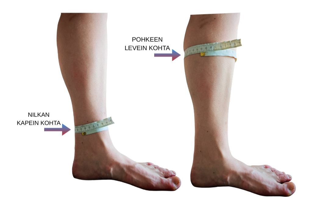 Parhaan kompressiovaikutuksen saat valitsemalla kokosi nilkan ympärysmitan perusteella. Näin varmistat, että sukat toimivat tehokkaimmin.